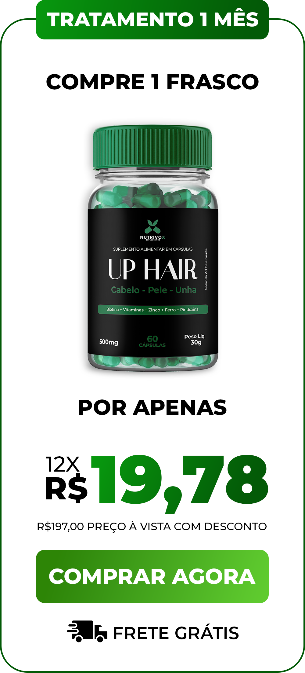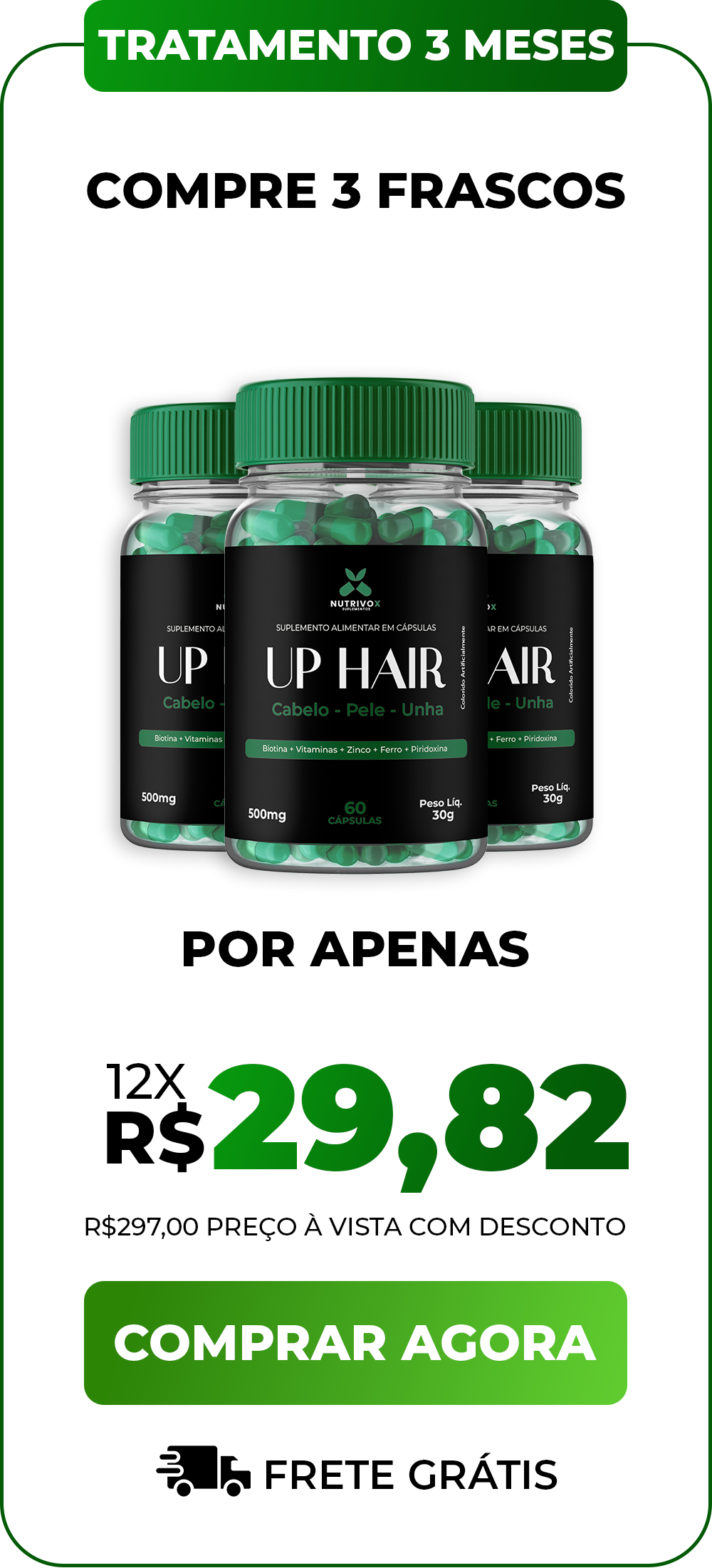 Aprovado pela ANVISA: UP HAIR é o Único Suplemento do Brasil com Registro nº 6.5432.7890-1 e Composição 100% Livre de Riscos!"Nossa fórmula passou por 17 testes rigorosos em laboratórios credenciados pela ANVISA para garantir: